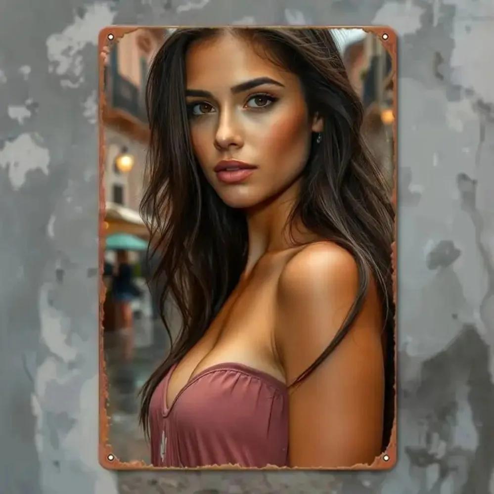 Vintage Iron Wall Art Red Dress Lady Portrait Metal Decor for Living Room
