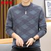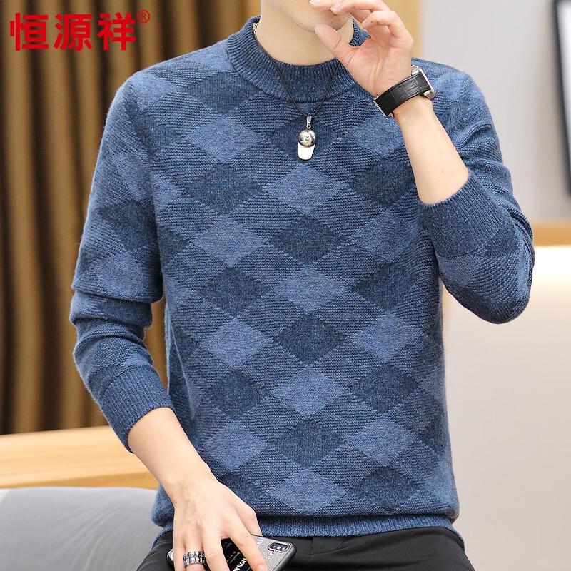 Hengyuanxiang Men's Thickened 100% Wool Semi-High Collar Geometric Knit Sweater