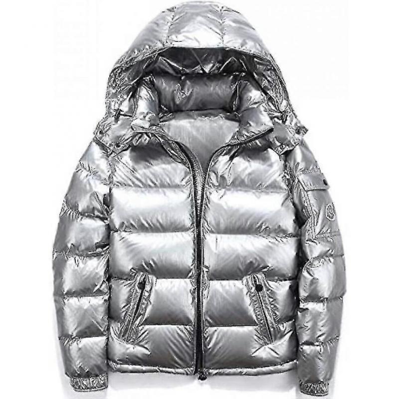 Shiny Down Jacket Men"s Winter Jacket Stand-up Tie Hood Down Jacket