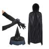 Elevating your Halloween cosplay costume with the Witch Cloak Costume comes with Witch Hat Lace Eye Mask and Long Gloves, featuring unique half veil that adds touch of mystery at any cosplay event.