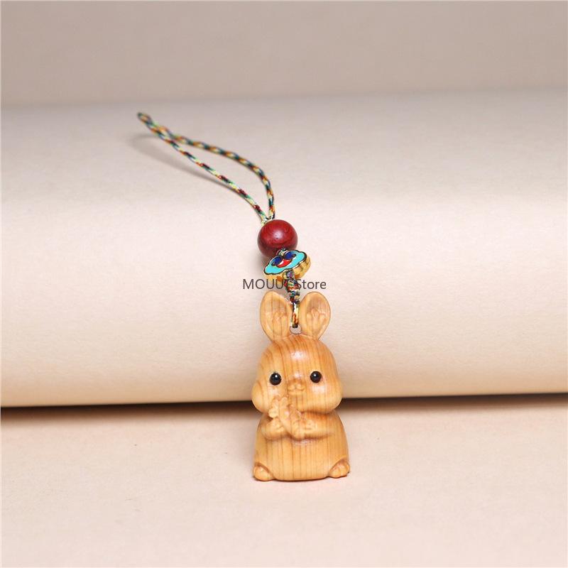 Thuja Twelve Zodiac Carving Wooden Pendant Chinese Zodiac Wood Carving Figurines Bag Decoration Gifts for Family Couple