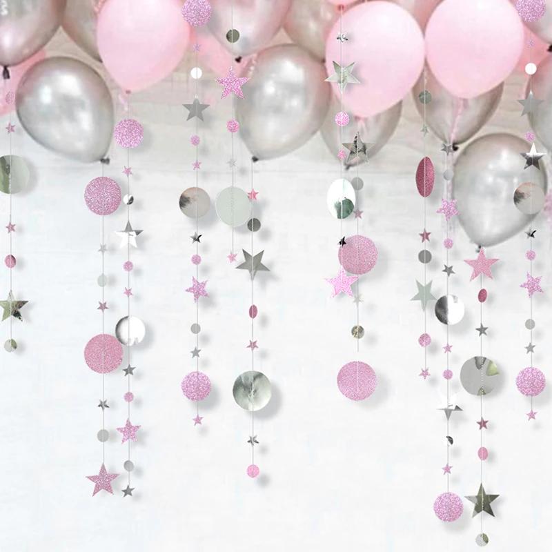 4M Champagne Gold Glitter Star Round Paper Garland Birthday Wedding Bachelorette Party Decorations Anniversary Backdrop Decor