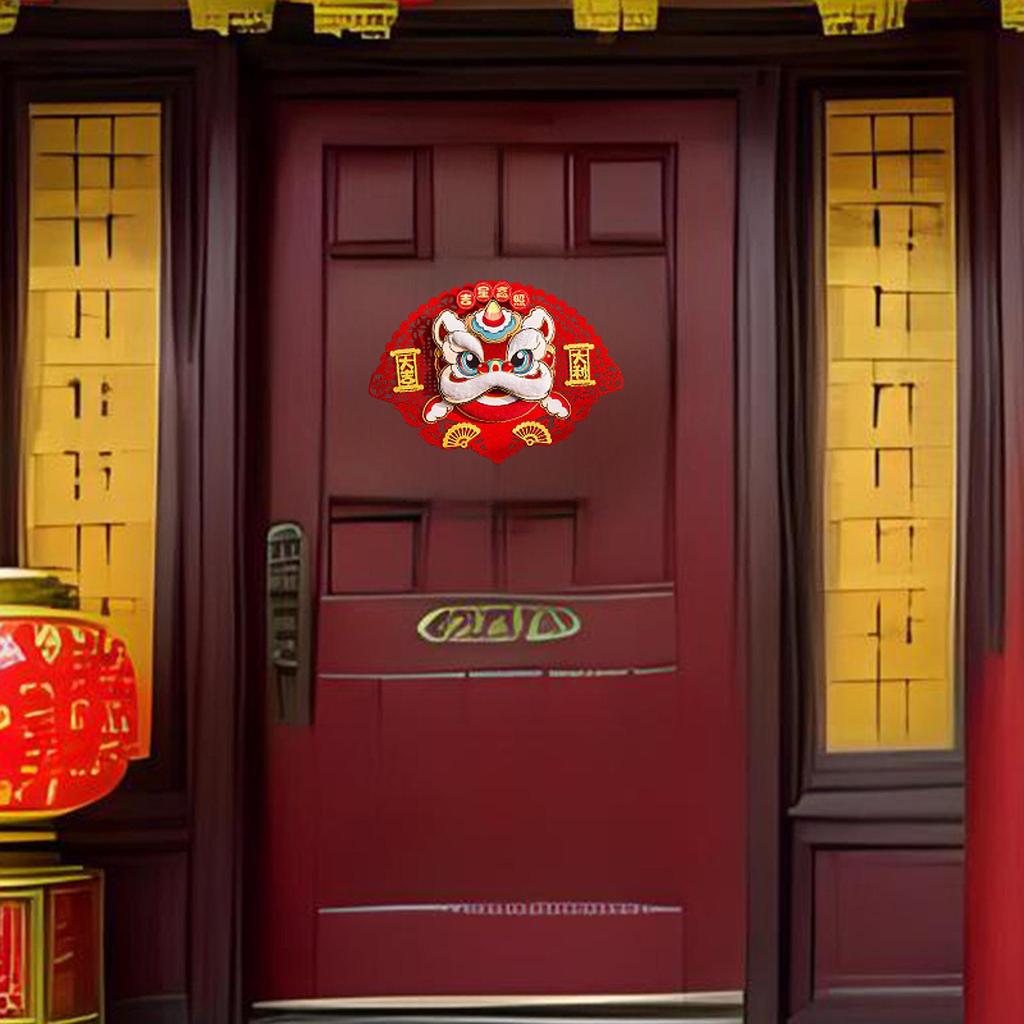 Spring Festival Fan Shaped Lion Dance Door Decoration 33x50cm Multifunctional Flocked Fabric for Festival Party Supplies