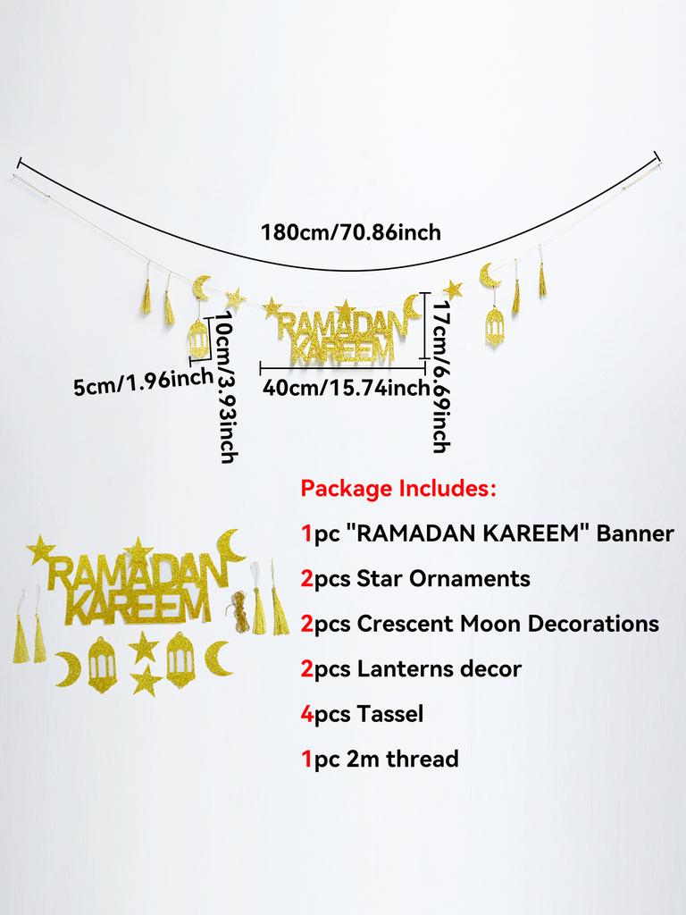 Ramadan Kareem Guldglitter Banner Non-Woven Tyg Stjärna Måne Lykta Tofs Väggdekor Girlang Islamisk Festlig Hemdekoration