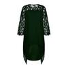 Nätsömmar och utsvängda trekvartsärmar gör den här klänningen väldigt snygg och unik. Den oregelbundna klänningsnedkanten ger klänningen en känsla av design.