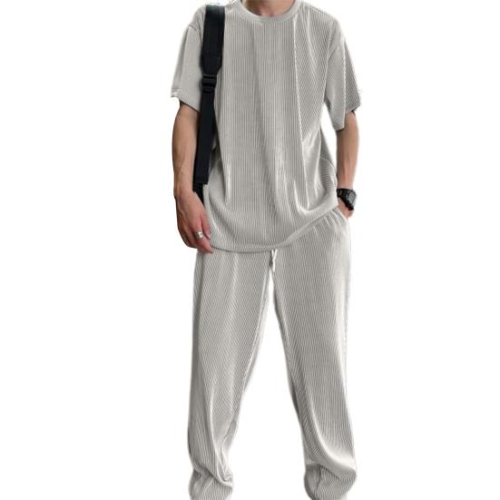 1 Set Top Pants Solid Color Loose Summer Crew Neck Draping Outfit