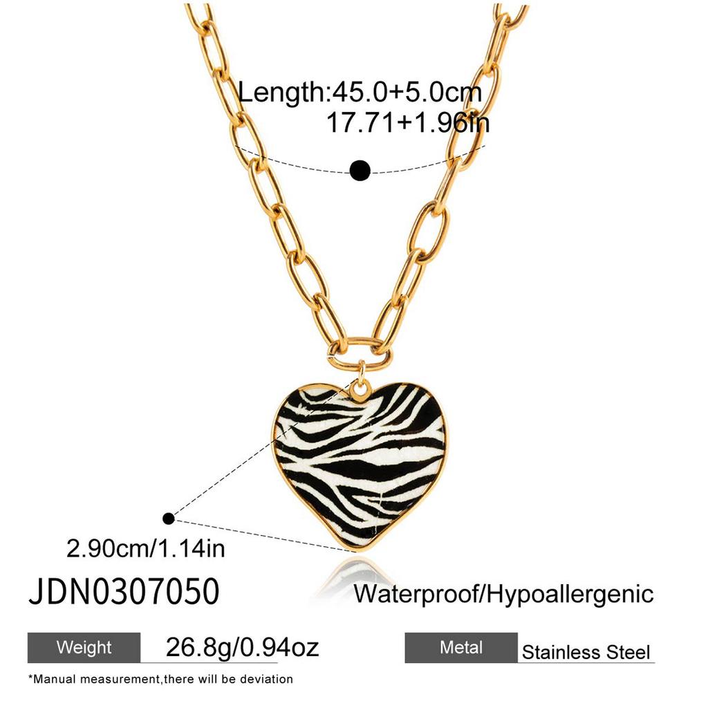 Vintage style 18K gold leopard print oil print love pendant necklace accessory accessories