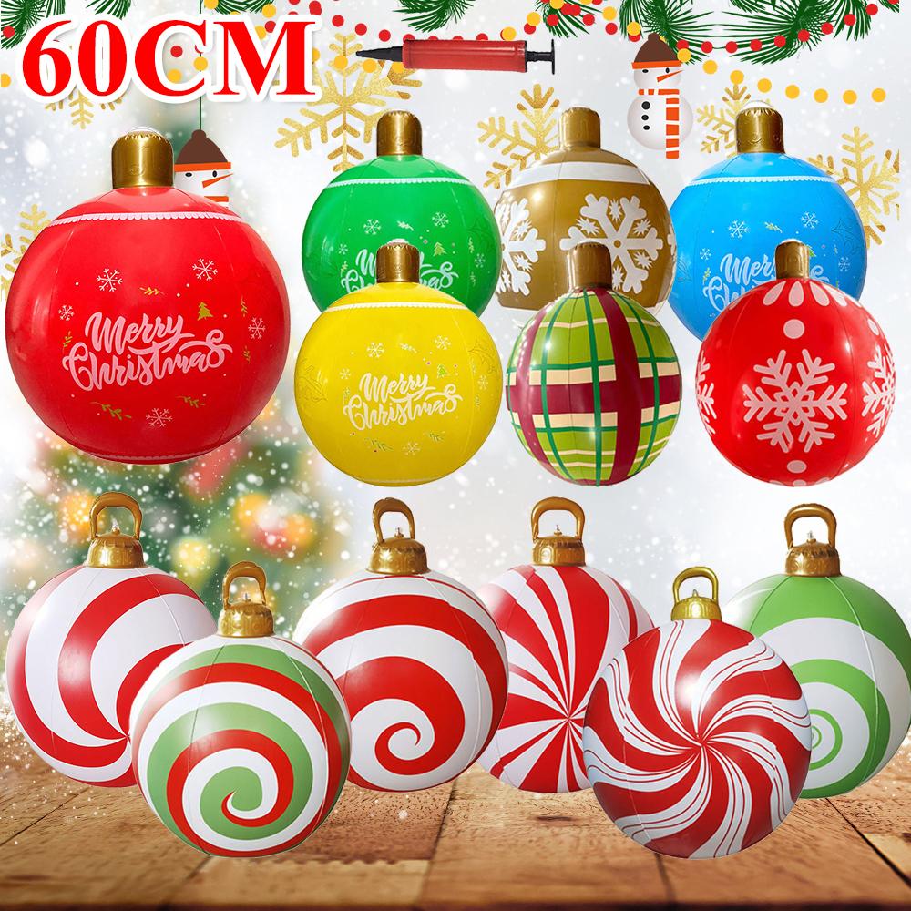 24 tum uppblåsbara julkulor med ljus utomhus juldekorationer PVC 60 cm jättejulkulor högtidsdekor