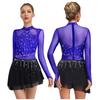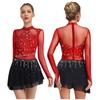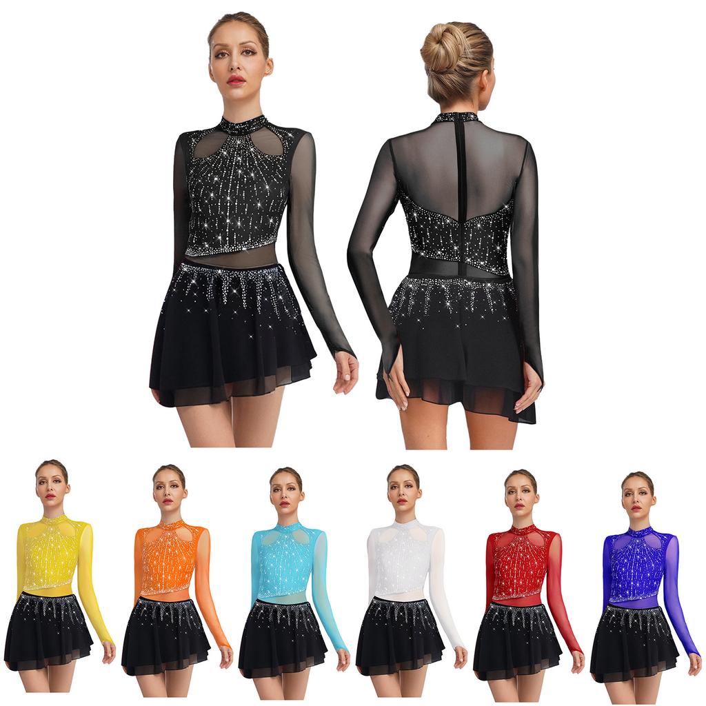Långärmad Dansdräkt Klänning för Kvinnor Chiffongkjol Strass Scenuppträdande Kostym