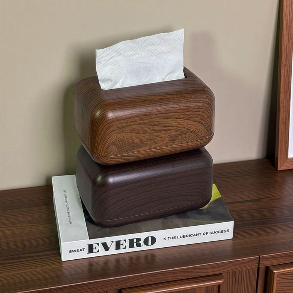 Ins Stil Imitation Träådring Servettlåda Multifunktionell Kreativ Skrivbords Papperslåda Halkfri Utsökt Hållare för Ansiktsservetter