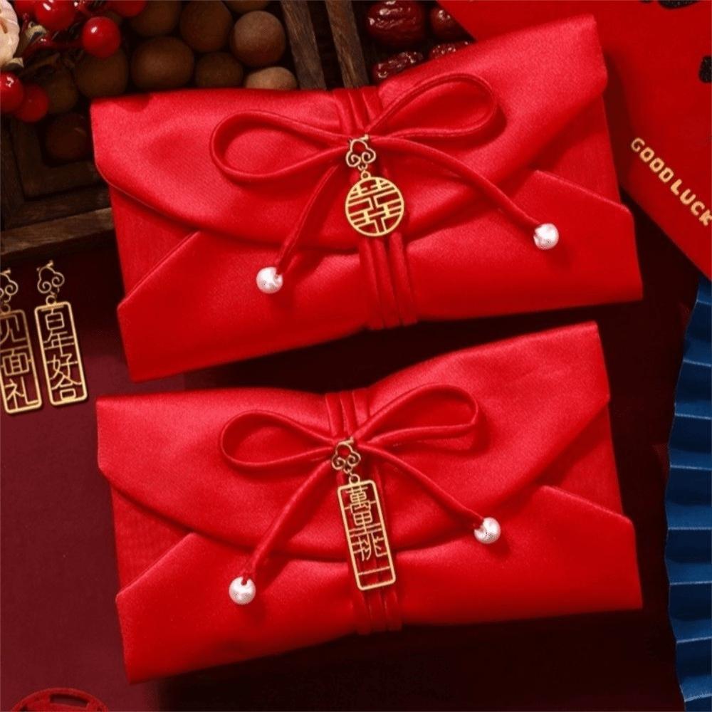 Chinese Style Brocade Red Envelope HongBao Traditional Wedding Money Envelope Blessing Bronzing Red Lucky Bag