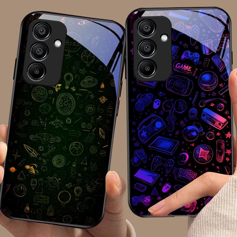 Dream Space Svart Grön För Samsung Galaxy A15 5G 54 4G 51 50 24 35 90 71 12 51 53 52S 80 22 34 Svart Härdat Glas Telefonfodral