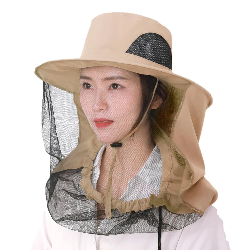 EBISSY Insect Net Hat with UV Farm Outdoor Fishing Sunshade, Mesh, Breathable, Foldable, Compact, Protection, Gardening, Work, Activities, (Beige)