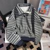 The compound is really super, the velvet and thickened contrasting striped turtleneck sweater is loose and versatile to keep warm in autumn