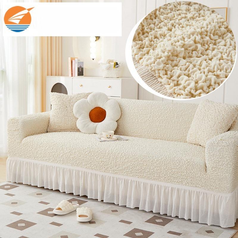 High End Cream Cloud Skirt Sofa Cover Elastic All Inclusive Four Season Solid Color Simple Sofa Cover