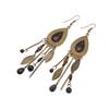 1 Pair Women Girls Oval Leaves Alloy Hook Ear Studs Tassels Beads Long Earrings