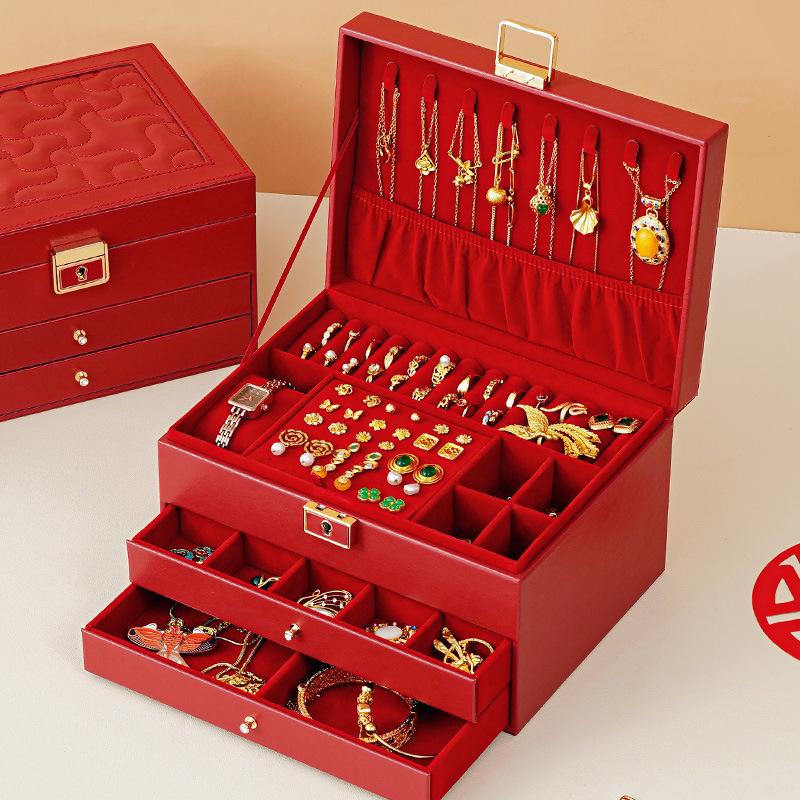 Multilayer Leather Wedding Jewelry Storage Box with Drawers for Necklaces and Rings