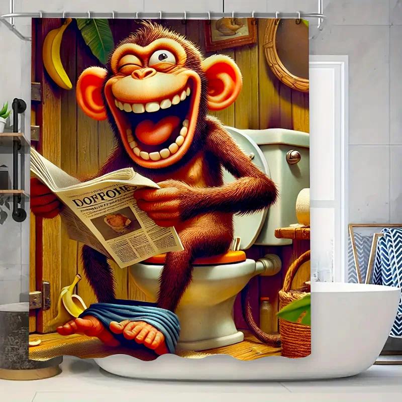 Comical Monkey Reading Toilet Paper Shower Curtain Bathroom Decor 3D Printed Waterproof Home Accessories for Kids' Bathrooms