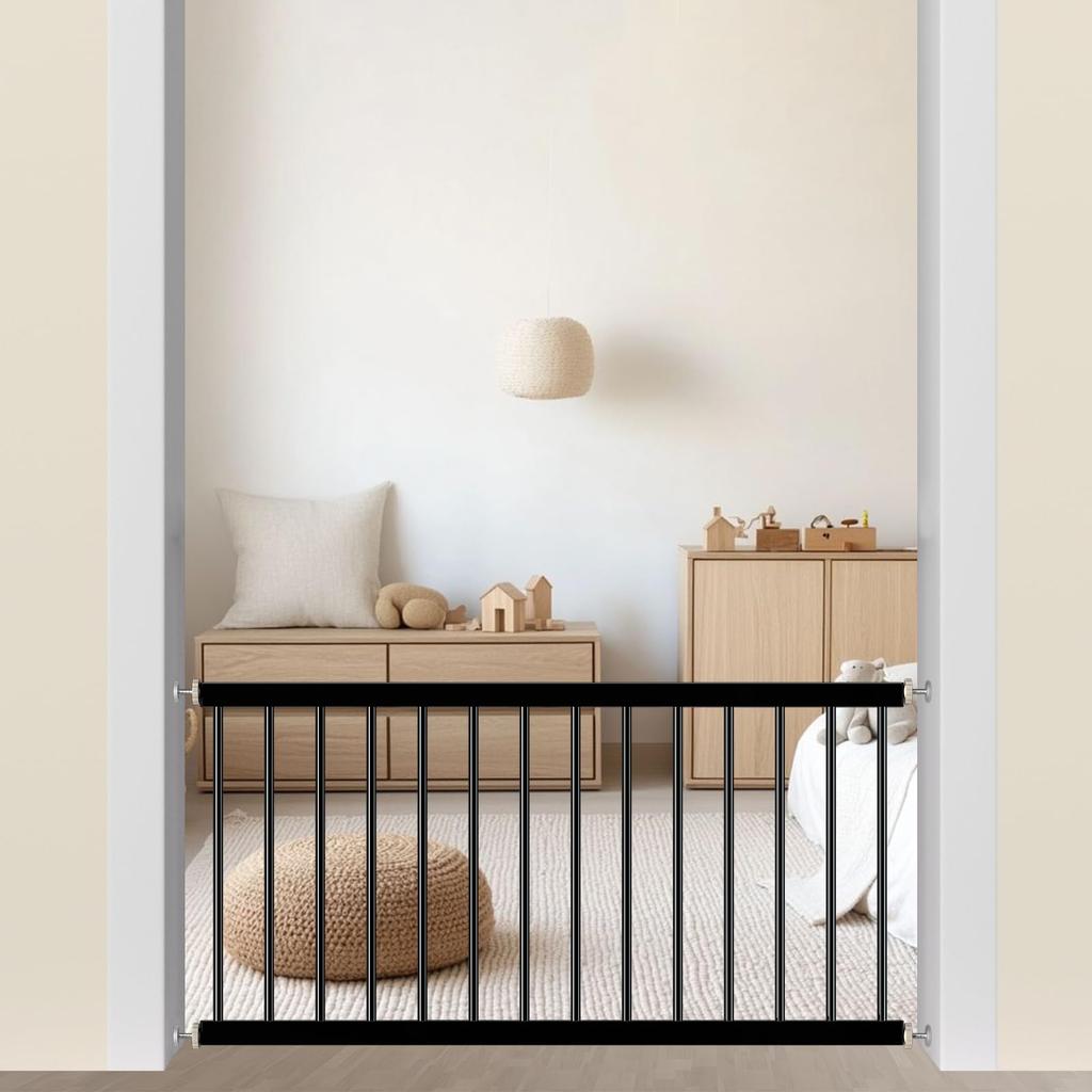 TSAYAWA Baby Gate, Low Partition, Dog Gate, Tension Type, 44cm High, Indoor Pet Fence, Small Dog Fence (92-98cm Wide, Black)