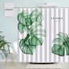 Tropisk Grön Växt Palmblad Badrum Duschdraperier Sommar Djungel Tyg Vattentätt Krokar Hängande Draperi Badskärm Dekor