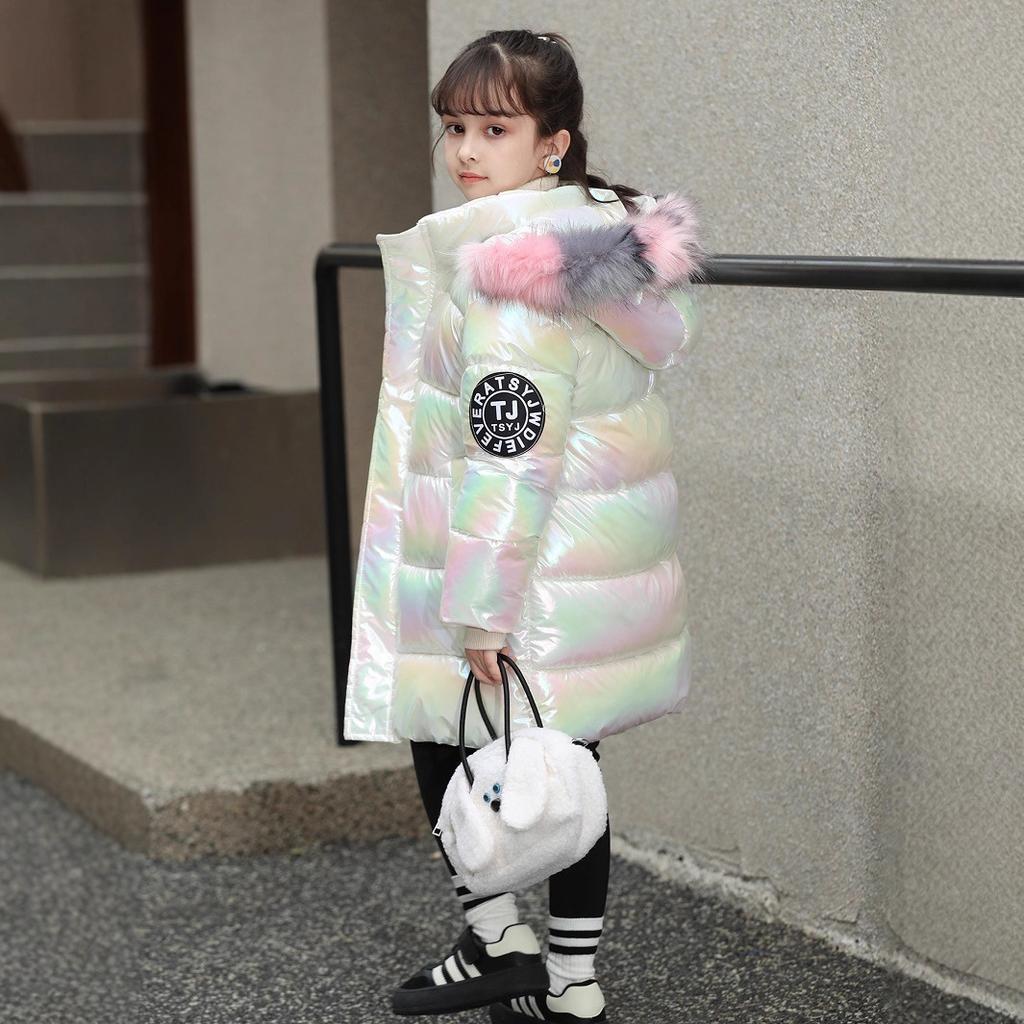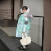Girls' winter cotton-padded clothes, thickened cotton-padded warm colorful hooded down cotton-padded clothes, children's leave-in long cold-proof