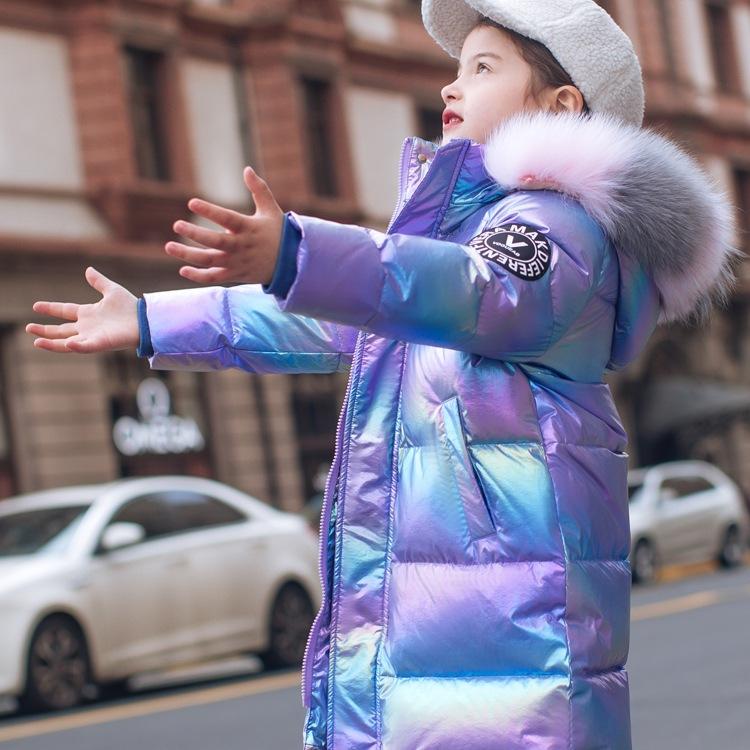 Medium and long children's down jackets, girls' medium and older children's thickened warm winter jackets