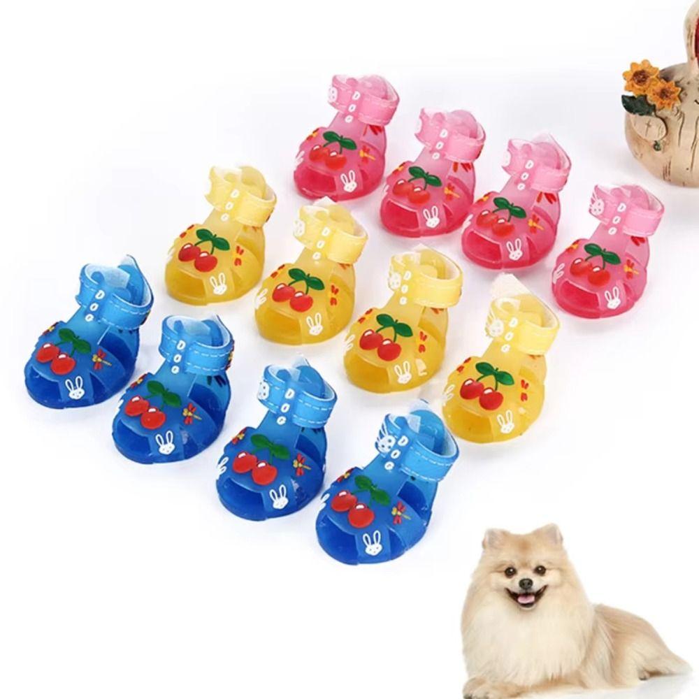 4 st/set Tecknad Hund Sommar Jelly Sandaler Halkfria Justerbara Ihåliga Valpskor Vattentäta Slitstarka Andningsbara Hundskor