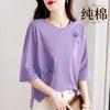 Avslappnad Ren Bomull Kortärmad T-shirt Dam Sommar Ny Lös Utländsk Mode Mångsidig Medelålders Topp