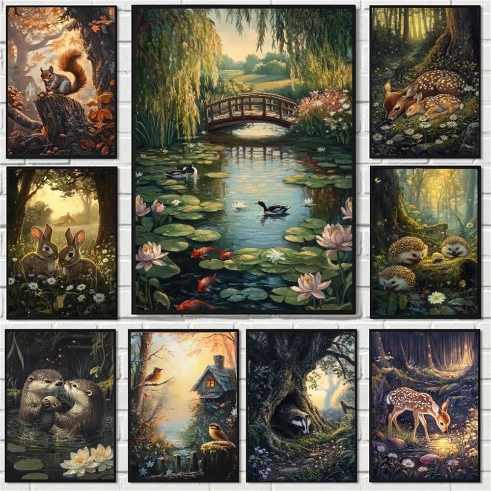 5D Diy Diamond Painting Cross Stitch Embroidery Vintage Woodland Animals Full Round Drill Home Decor Wall Art Gift