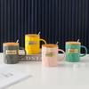 Contrasting colors ins wind Nordic ceramic mug with lid and spoon Creative household water cup Simple coffee cup Stone pattern