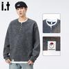 CHOCOOLATE Men's Faux Two-Piece Henley Sweatshirt