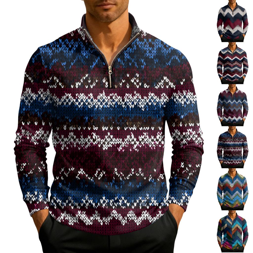 Herrstickad tröja med kvartslång dragkedja och ståkrage