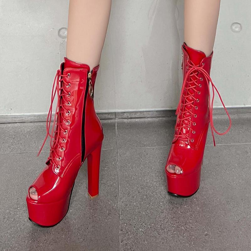 Women's high-heeled cool boots, sexy European and American style waterproof platform thick heel large size fish mouth shoes