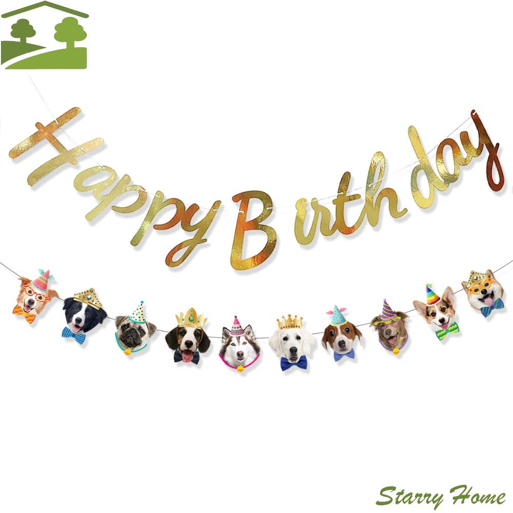 Party Supplies Cartoon Pattern Happy Birthday Banner Paper DIY Decoration Cat Garland Cute Animal Pet Theme Banner Baby Shower