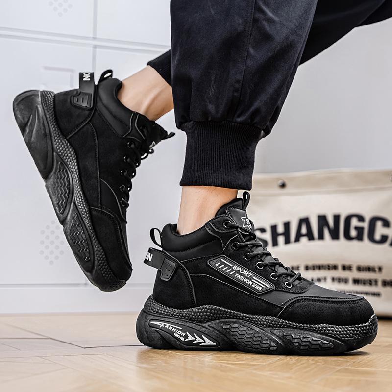 Herr Enfärgad Platt Klack Halkskydd Skydd Tjock Sula Höjdökande Stabil Grepp Vandringskängor Retro Hög Topp Sport