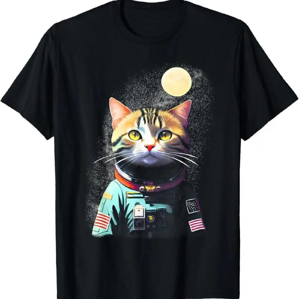 Söt astronautkatt i rymden med månen i bakgrunden T-shirt