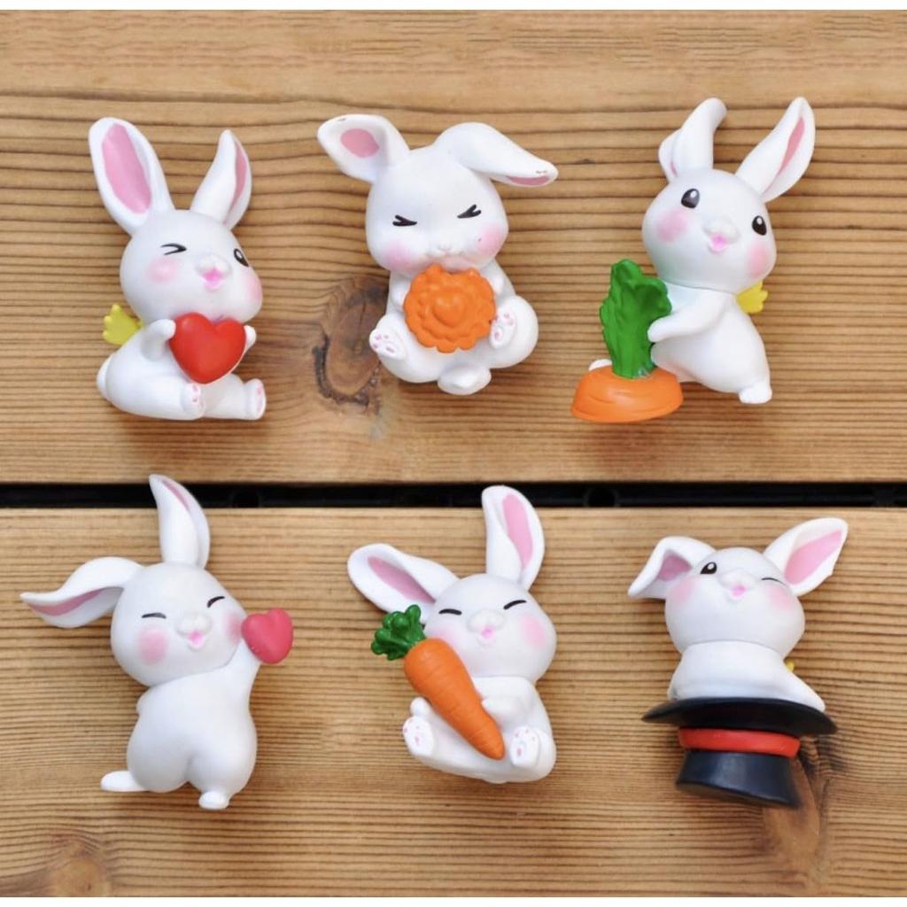 Miniature Showpiece Set for Home Decor,Car Dashboard,Valentine,Living Room,Gifts Figurines,Cake Decoration Items,Figurines for Home Decor. (6 Pcs Rabbit Set)