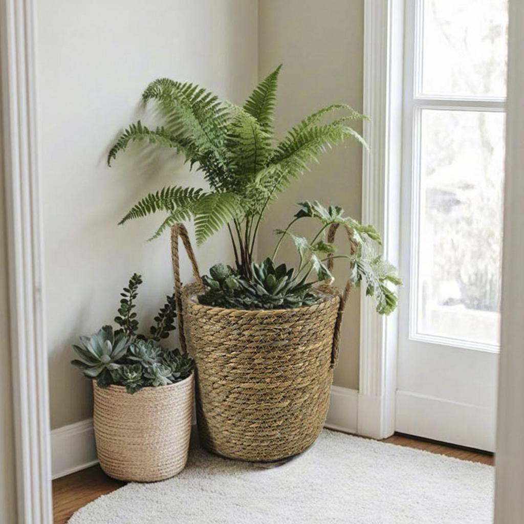 Handcrafted Straw Rope Indoor Plant Basket with Liner