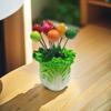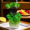 Fruktgafflar i rostfritt stål: Söt design med jordgubbar och kål, perfekt för heminredning.
