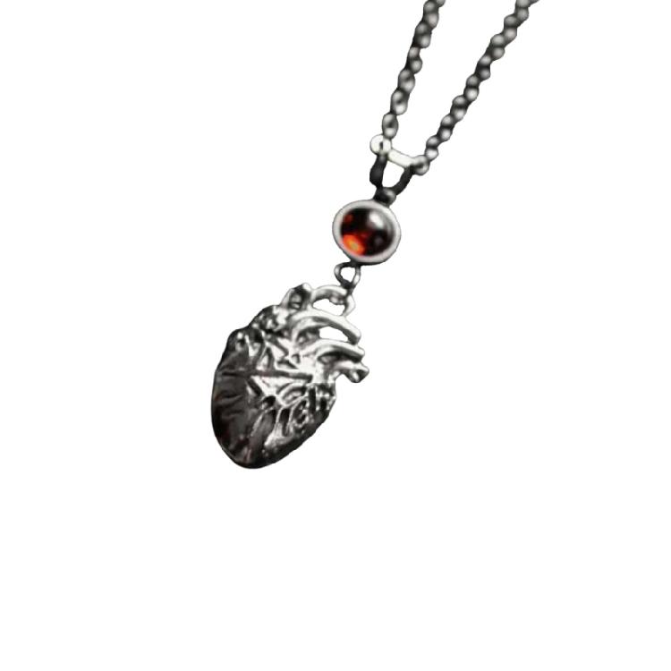Detailed Metal Gothic Necklace With Heart Charm Perfect For Dark Aesthetic Wardrobe