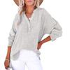 Women Shirt V-Neck Buttons Half Placket Long Sleeve Pullover Tops Solid Color Loose Fit Pleated Tops Casual Tee Daily Wear