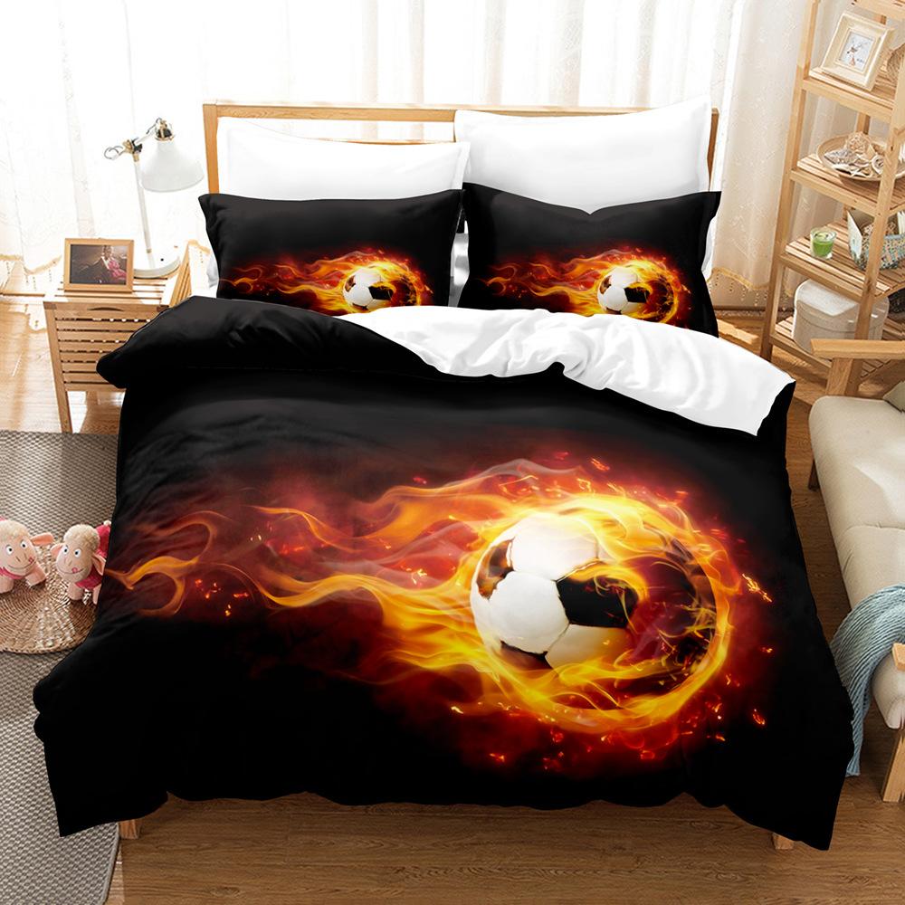Fotbollstryck Tredelat Set 3D Digitalt Sängklädesset, Lakan Täcke Set Tvådelat Set