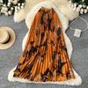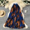 Spring Summer Women Elegant Vintage Print Elastic Waist Long Maxi Pleated Skirt Only Have One Size