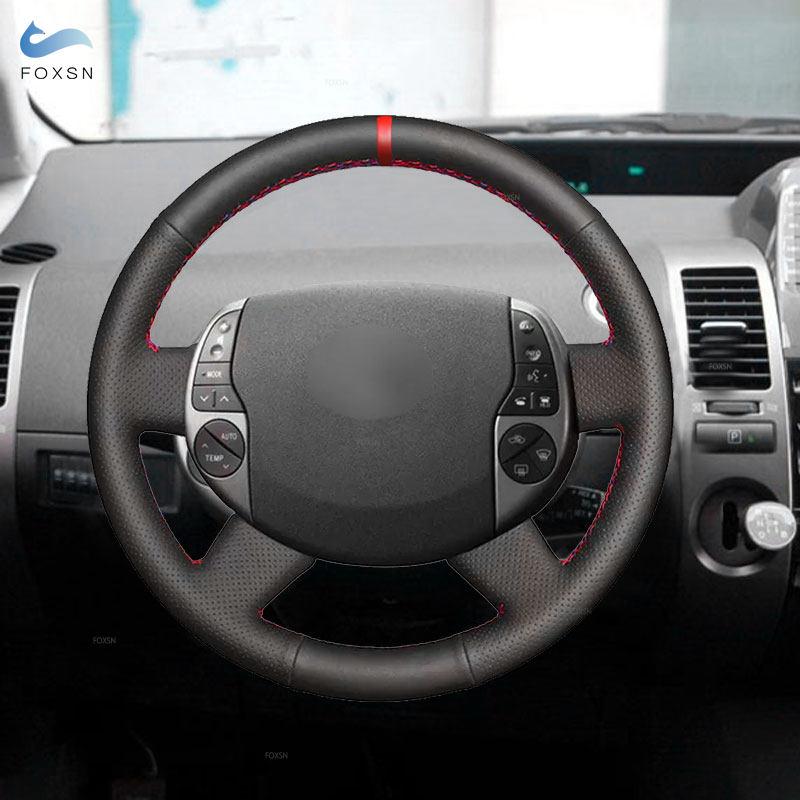 För Toyota Prius 20 XW20 2004 2005 2006 2007 2008 2009 Handstickt Bilstyrhjulsskydd Perforerat Mikrofiberläderkant