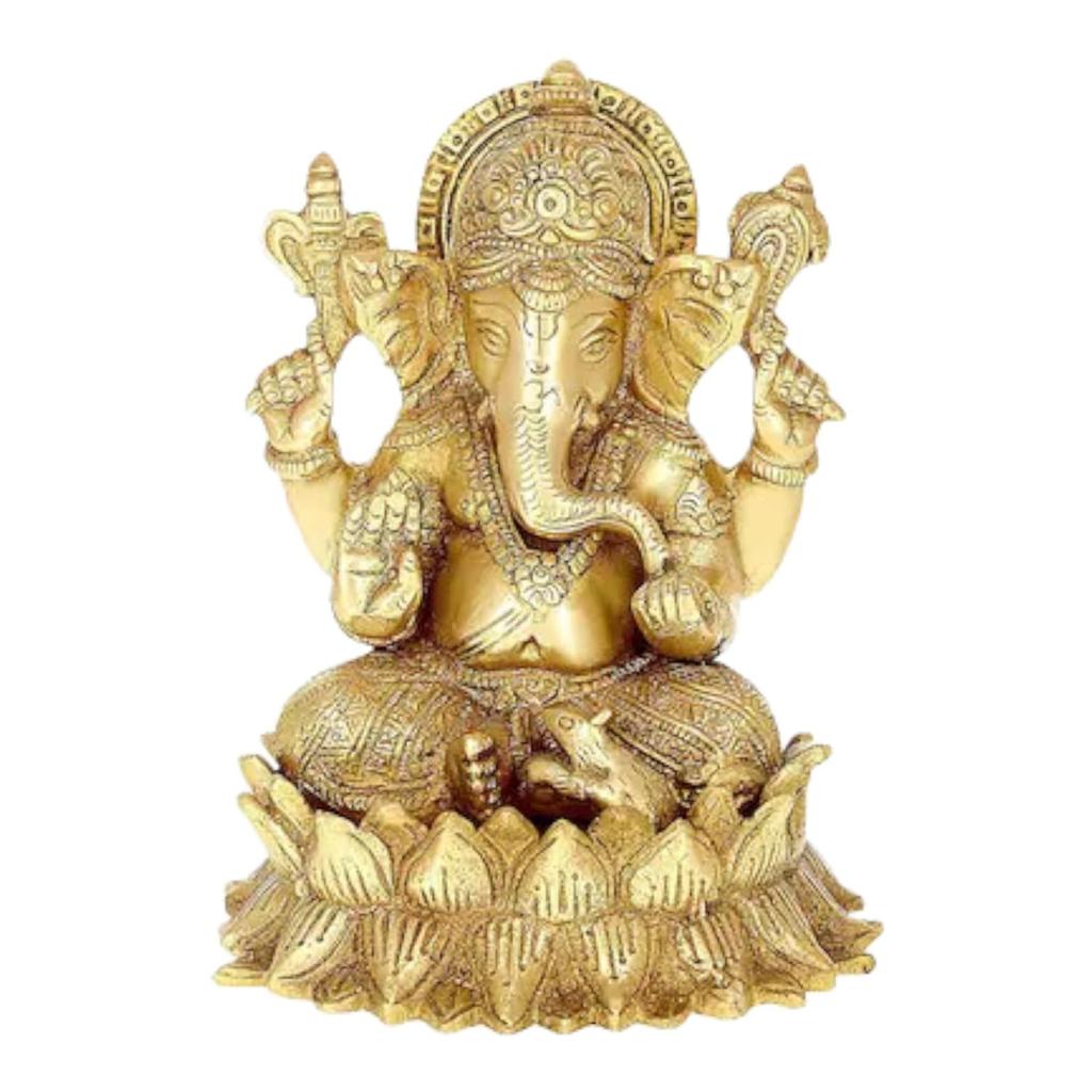 Ashtadhatu Brass Lord's Ganesh Idol, Ganpati Murti, Religious, Gold - 8 Inch