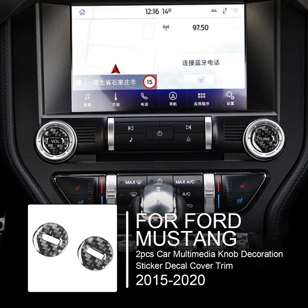 För Ford Mustang 2015- Kolfiber Interiör 2 st Bil Multimedia Knopp Dekoration Klistermärke Dekal Överdrag List Biltillbehör