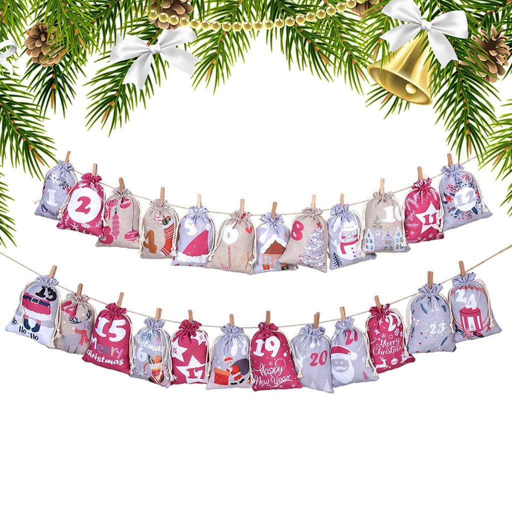 Nedräkningspåsar till jul Hängbara juldekorationer Återanvändbara tomma dragpåsar för festgåvor För barn Familj Vänner