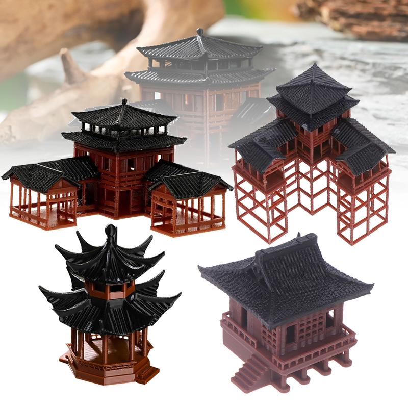 Kinesisk värdshusstaty Antik byggnadsmodell Miniatyr japansk paviljongdekorationer Miniatyr Zen-trädgård Akvarium Bonsaiträddekorationer