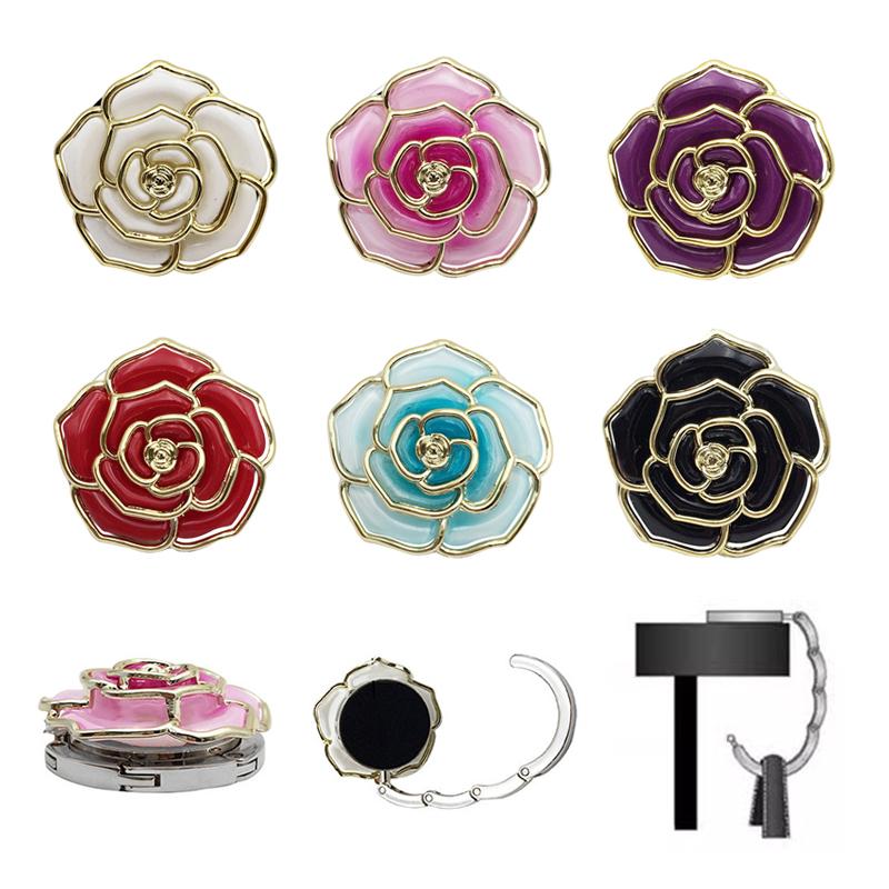Portable Folding Table Bag Hook Flower Shaped Hanger Holder Round Vintage Rose Hook Decoration Women's Bag Holder Girls Gift