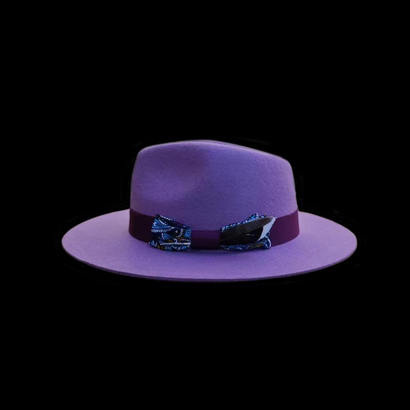 Fashion Pure Wool Top Hat British Style Felt Hat Bow Webbing Feather Decorative Felt Hat